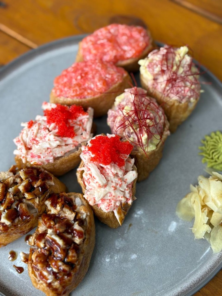 Склад: Інарі лосось - 2 штІнарі тунець-авокадо - 2 штІнарі вугор - 2 шт Інарі сніжний краб - 2 шт